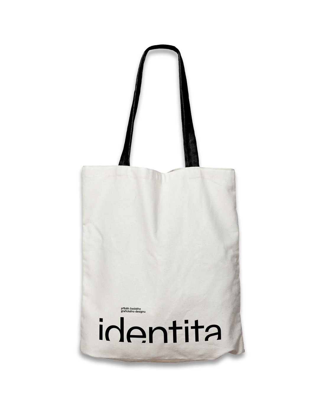 Stylová plátěná bavlněná taška s černým logem projektu Identita – příběh českého grafického designu