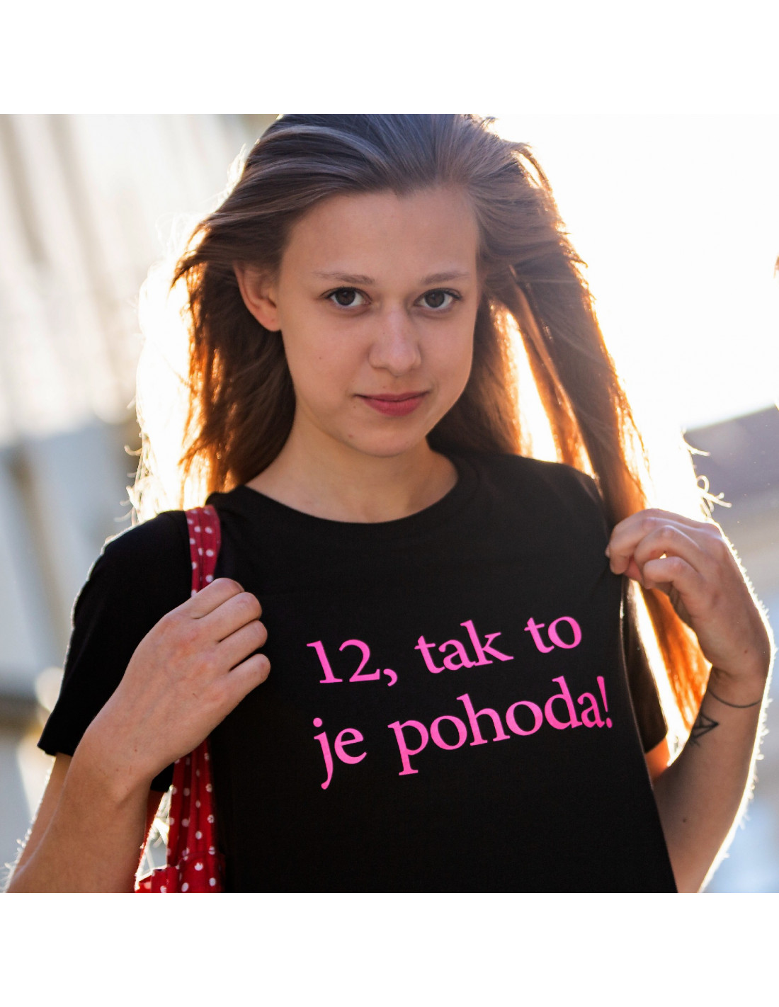Tričko unisex černé - růžový nápis - Pohoda